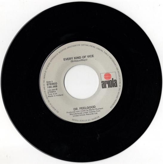 ブリティッシュパブロックバンド、DR. FEELGOODの'79年リリース12枚目のシングル。両面共に6thアルバム'Private Practice'からのシングルカットでタイトル曲は渋くタイトに仕上がった彼らの人気曲、'70s英国産R&Bナンバー!本国UK盤とはスリーヴデザインが異なる貴重な1979年オランダオリジナル盤。