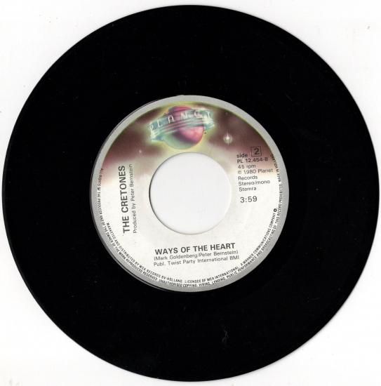 MARK GOLDENBERG率いるロサンゼルス出身のアメリカンニューウェーブグループ、THE CRETONESの'80年リリースシングル。タイトル曲は後にLINDA RONSTADTもカヴァーする(ギターはMARK GOLDENBERG)メロディックでキャッチーなパワーポップナンバー!1980年オランダオリジナル盤。