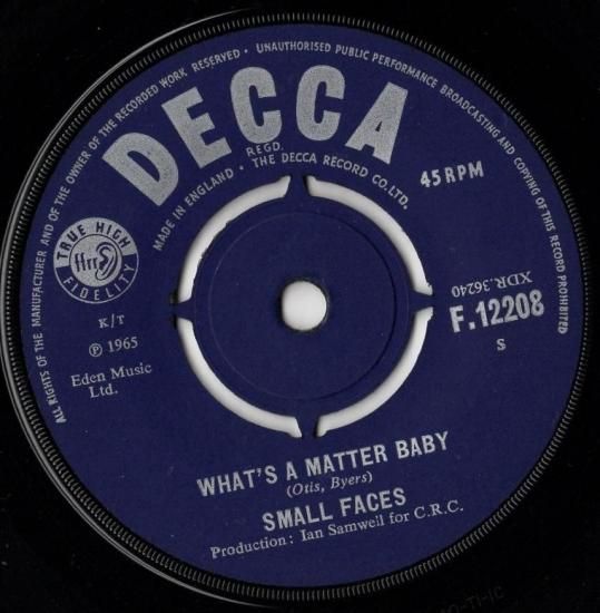 STEVE MARRIOTT率いるブリティッシュビートバンド、SMALL FACESの'65年リリース記念すべき1stシングル。SOLOMON BURKEの'Everybody Needs Somebody To Love'が元ネタとなったソウルフルなグレイトモッズクラシック!1965年UKオリジナル盤。中々出回らない盤コンディションが良い(strong VG++)貴重な一枚。
