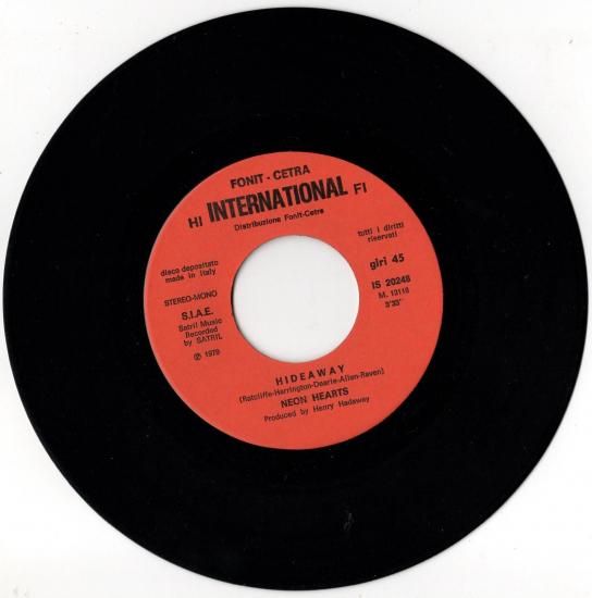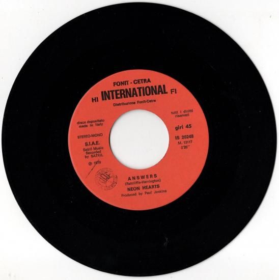 イングランド中部のウルバーハンプトン出身のパンクバンド、NEON HEARTSの2ndシングル。両面とも速く、タイトな演奏で魅せるグレイトポップパンクナンバー!UK盤とB面違いの1979年イタリアオリジナル盤。