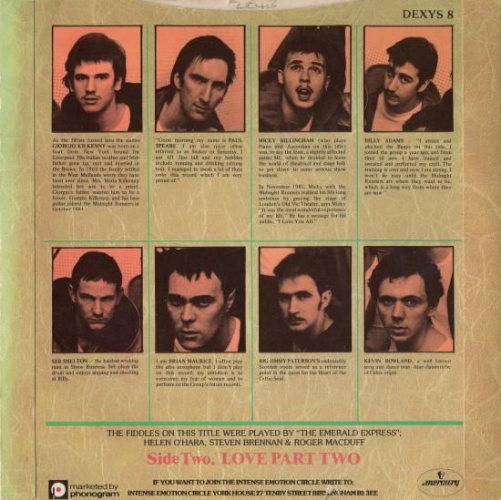 KEVIN ROWLAND率いるバーミンガム出身のブリティッシュロック~ソウルグループ、DEXYS MIDNIGHT RUNNERSの'82年にリリースされたアルバム'Too-Rye-Ay'からのシングルカット。アップテンポなリズムの中で印象的なフィドル、マンドリンのサウンドが響く大人気グレイトブルーアイドソウル!1982年UKオリジナル盤。