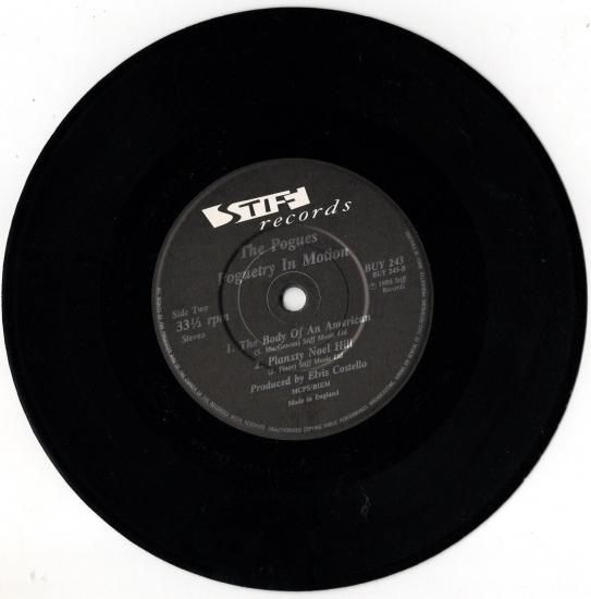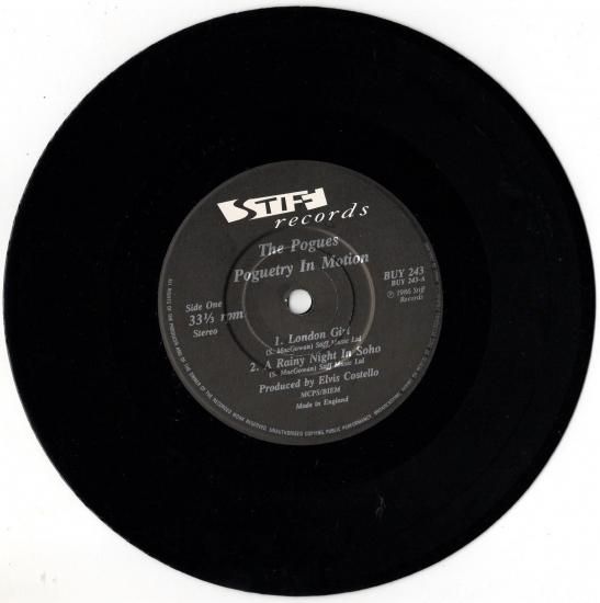 アイリッシュトラッド/パンクグループ、THE POGUESの'86年リリース7inch EP(4曲入り)。A1に彼らの代表曲の一つ'London Girl'を収録。またアイリッシュトラッドミュージシャンNOEL HILLの彼らに対するネガティヴな発言へのアンサーソングとしてコンサティーナをフィーチャーした'Planxty Noel Hill'なども収録した最高の一枚。1986年UKオリジナル盤(33rpm)。