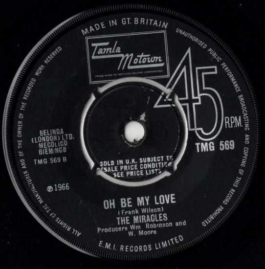 SMOKEY ROBINSON率いるモータウンソウルグループ、THE MIRACLESの'66年リリースシングル。タイトル曲はマイナーヒットながら躍動感溢れるモータウンビートで展開するノーザンソウルクラシックナンバー。1966年UKオリジナル盤。